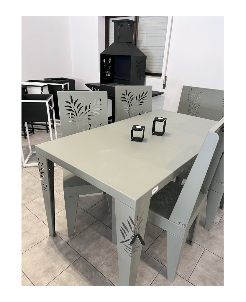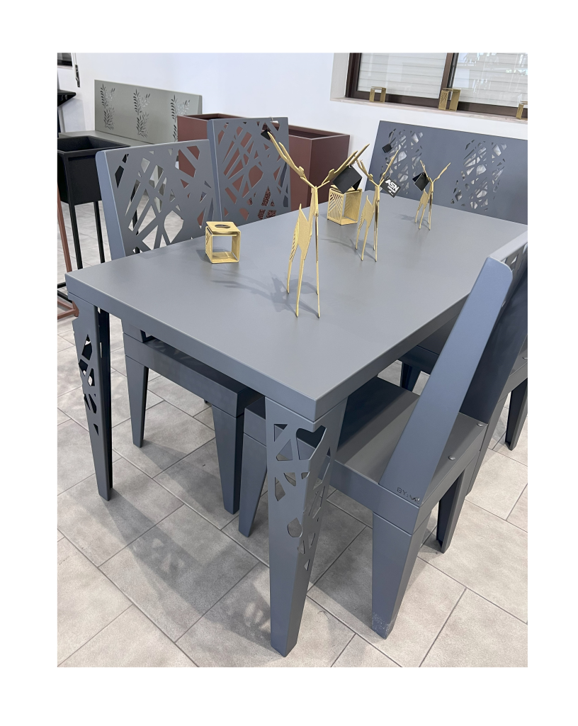 Conjunto Mesa e Cadeiras Corte Laser Cinzento Escuro