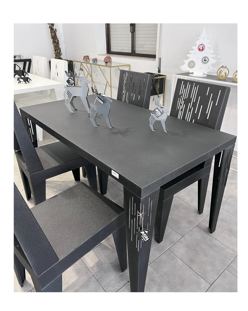 Conjunto Mesa e Cadeiras Corte Laser Preto Texturado